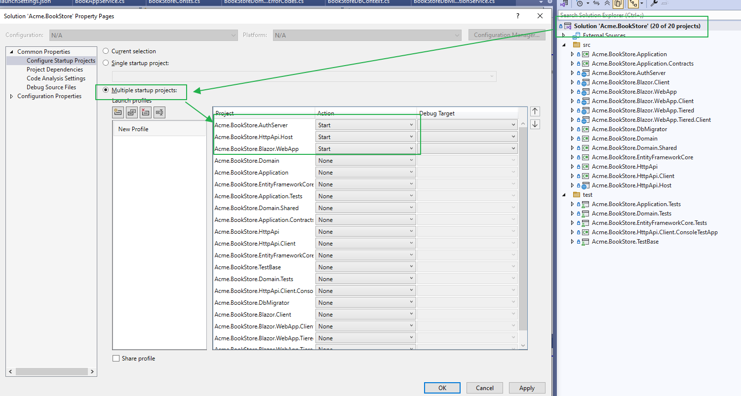 API需要启动Acme.BookStore.HttpApi.Host。