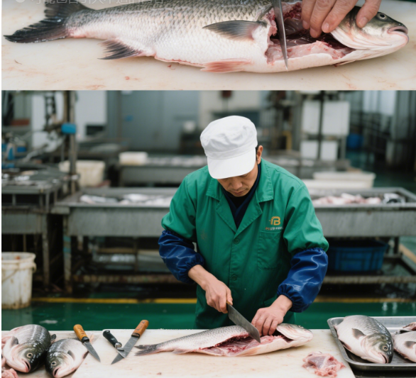 工人C擅长切花刀(在鱼身划出条纹图案)