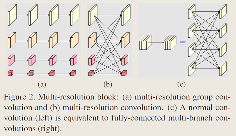 - 提出 "跨分辨率全连接 + 双向信息流动" 的卷积模块设计