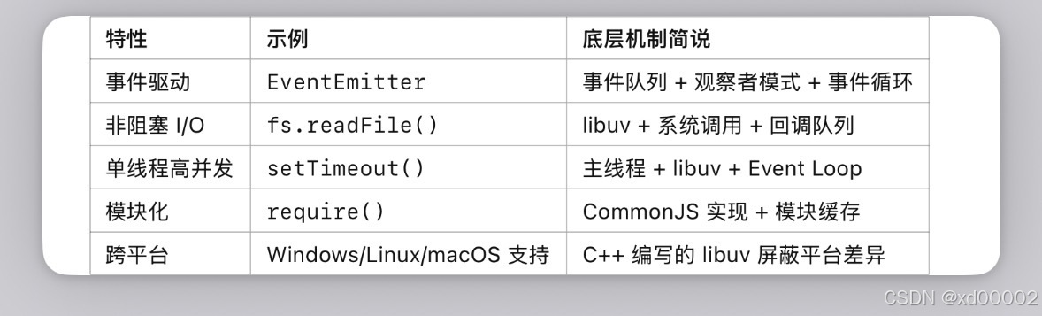 😺😺😺 二、Node.js 核心特性 + 示例 + 简单底层机制