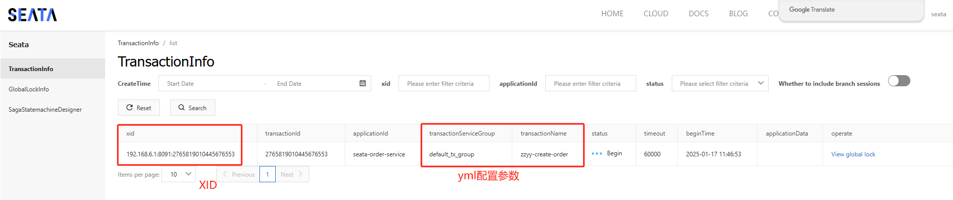 globalTransactional全局事务id:TransactionalId,分支事务id:branchId。