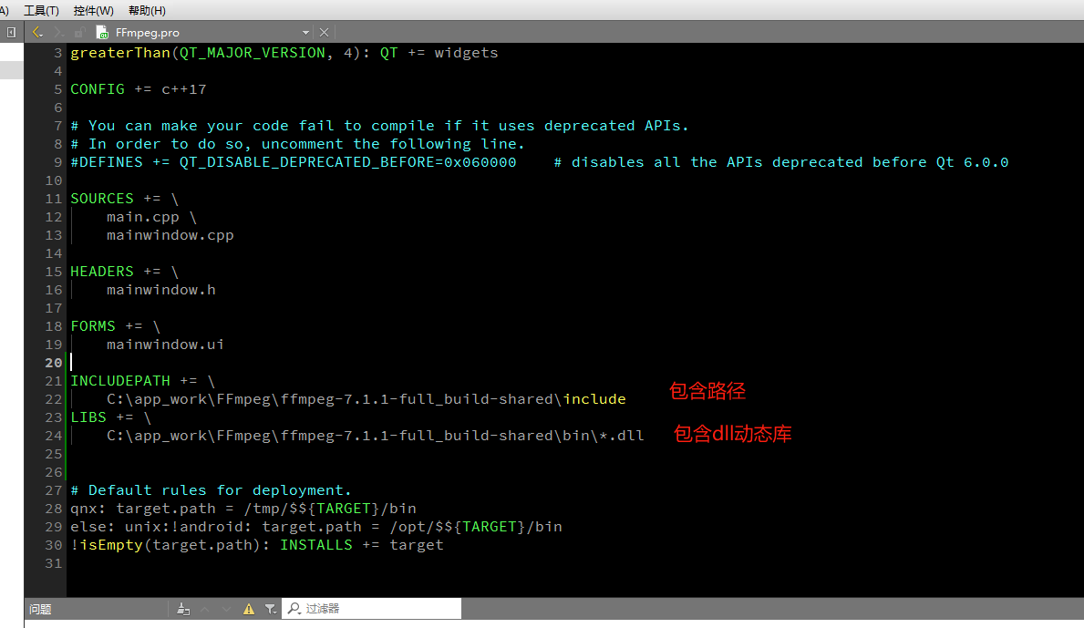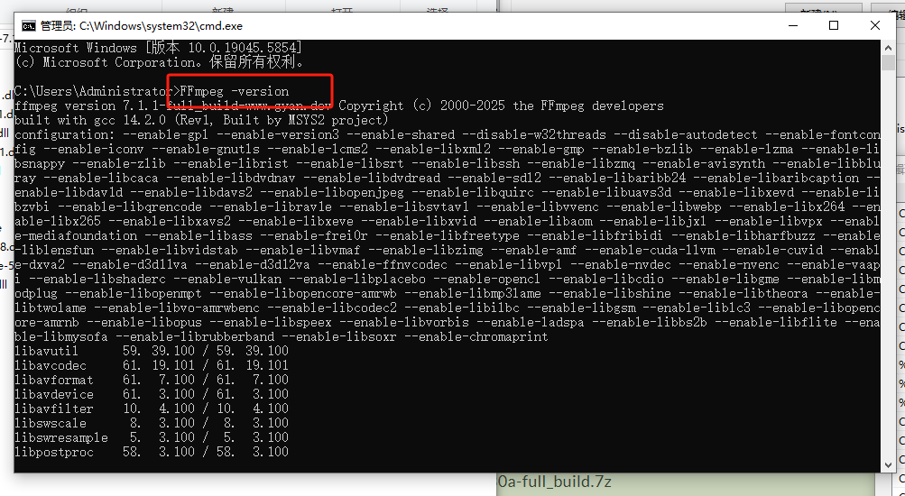 ffmpeg-7.1.1-full_build-shared这个库文件只能使用MinGW_64bit,其他得自己通过源码编译得到对应的库