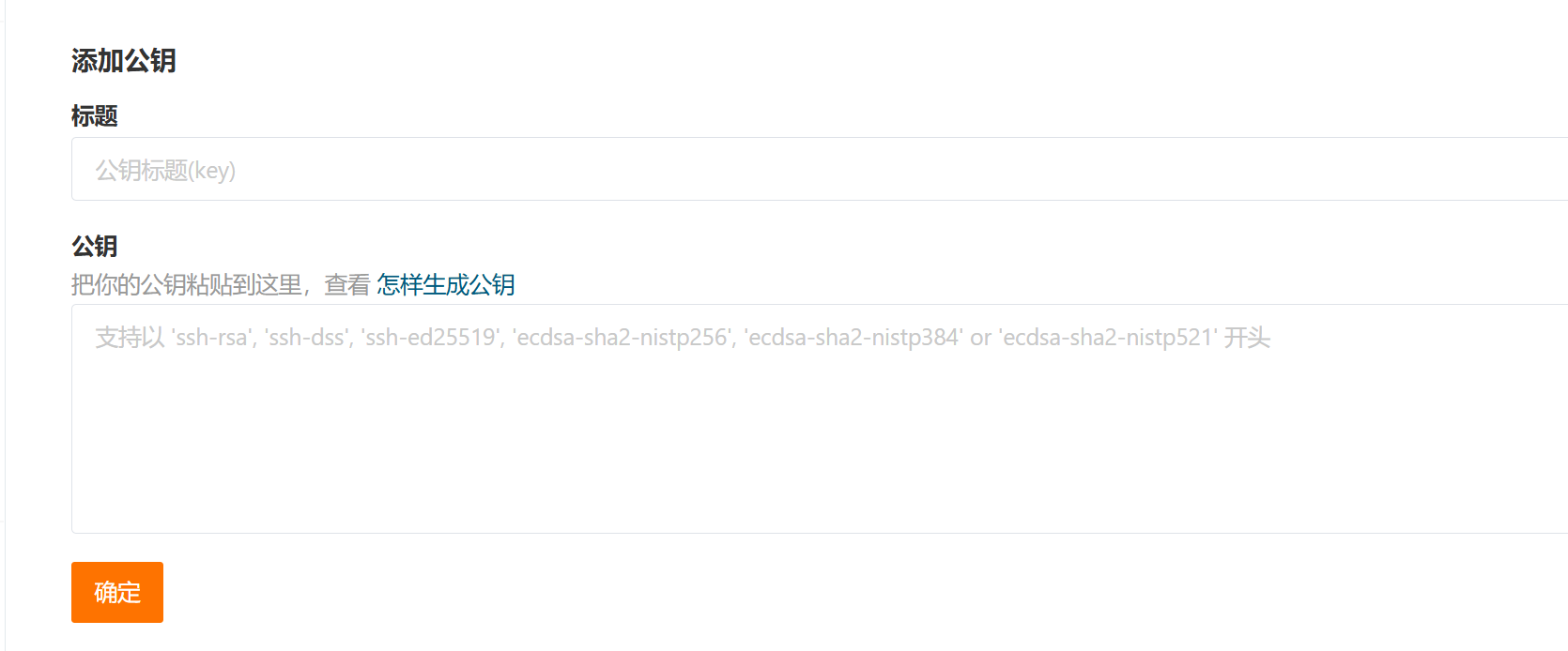 id_rsa.pub文件中的全部内容 复制粘贴到"公钥"文本框里。id_rsa.pub文件可以用文本编辑器打开查看内容。 - 点击"确定"或"添加"。平台可能会要求你再次输入账号密码进行确认。