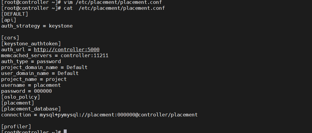[root@controller ~]# grep -Ev '^$|#' /etc/placement/placement.bak > /etc/placement/placement.conf