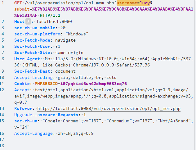 登录后可以看到个人信息,而且我们还可以发现,他是GET方式进行的,因为在地址栏中出现了个人信息