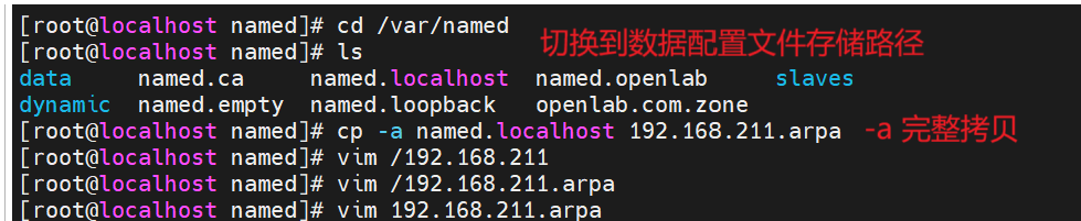 \[root@localhost named\]# cp -a named.localhost 192.168.211.arpa