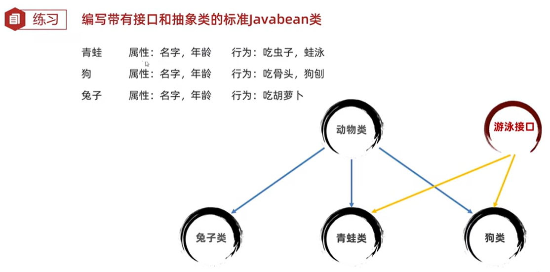 类和接口的关系:实现关系,可以单实现,也可以多实现,还可以在继承一个类的同时实现多个接口
