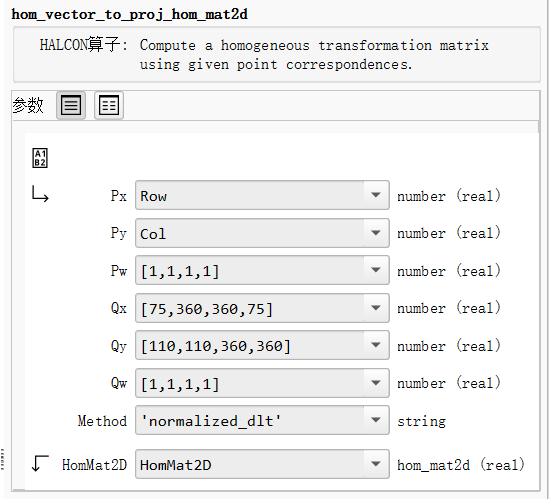 - HomMat2D:3×3的齐次投影变换矩阵