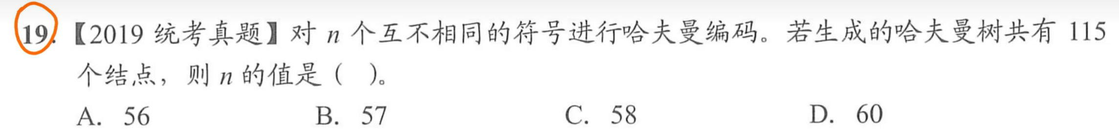 因为哈夫曼树中最初构造的节点最终都会落到叶结点上,所以这里n=n0,因此可以算出n2 = n-1