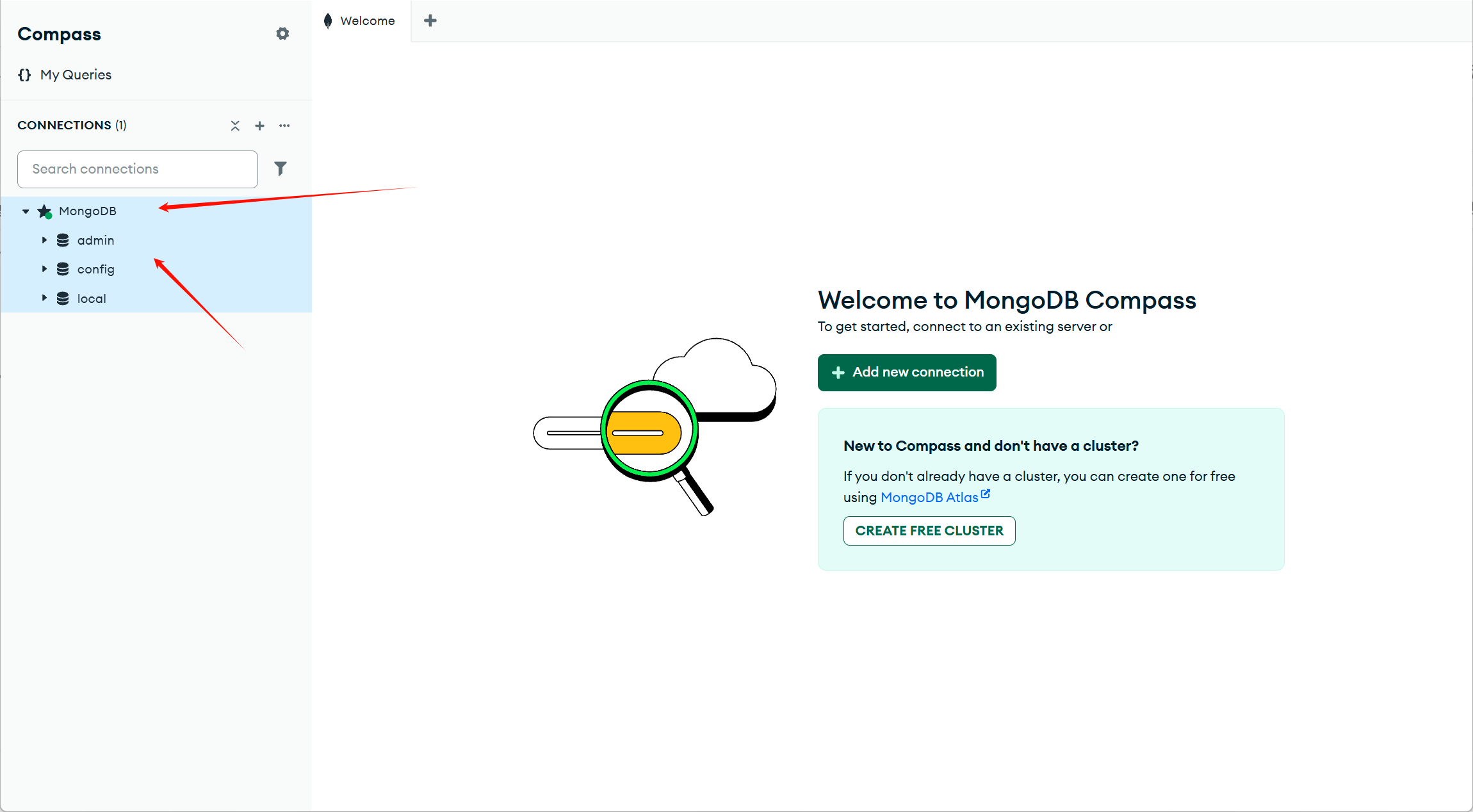 从当前 MongoDB Compass 界面来看,连接已成功啦,显示了 admin、config、local 这些 MongoDB 默认数据库 ,这说明 Compass 已成功连接到 MongoDB 服务。