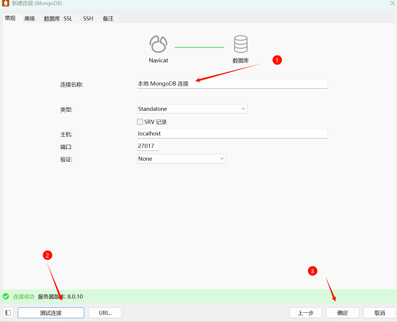 - Name:给连接起个名字(比如 "本地 MongoDB"),方便后续识别。