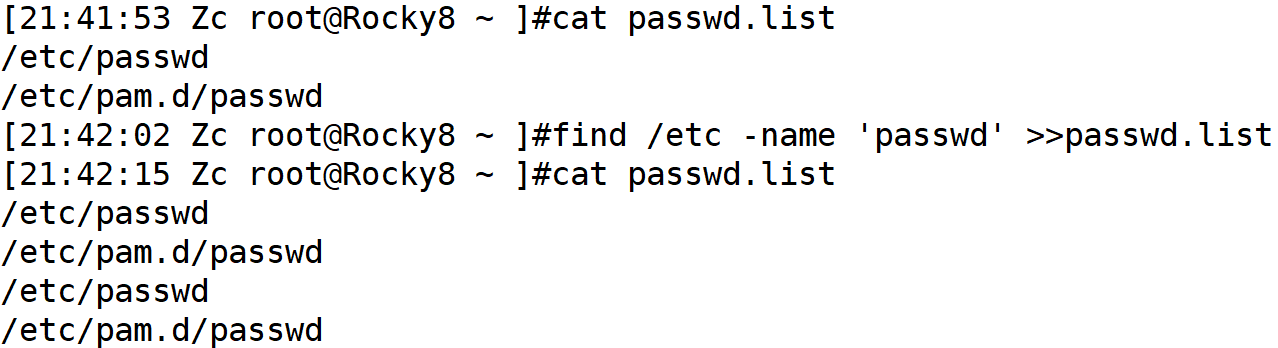 find /etc -name 'passwd' >> passwd.all 2>&1