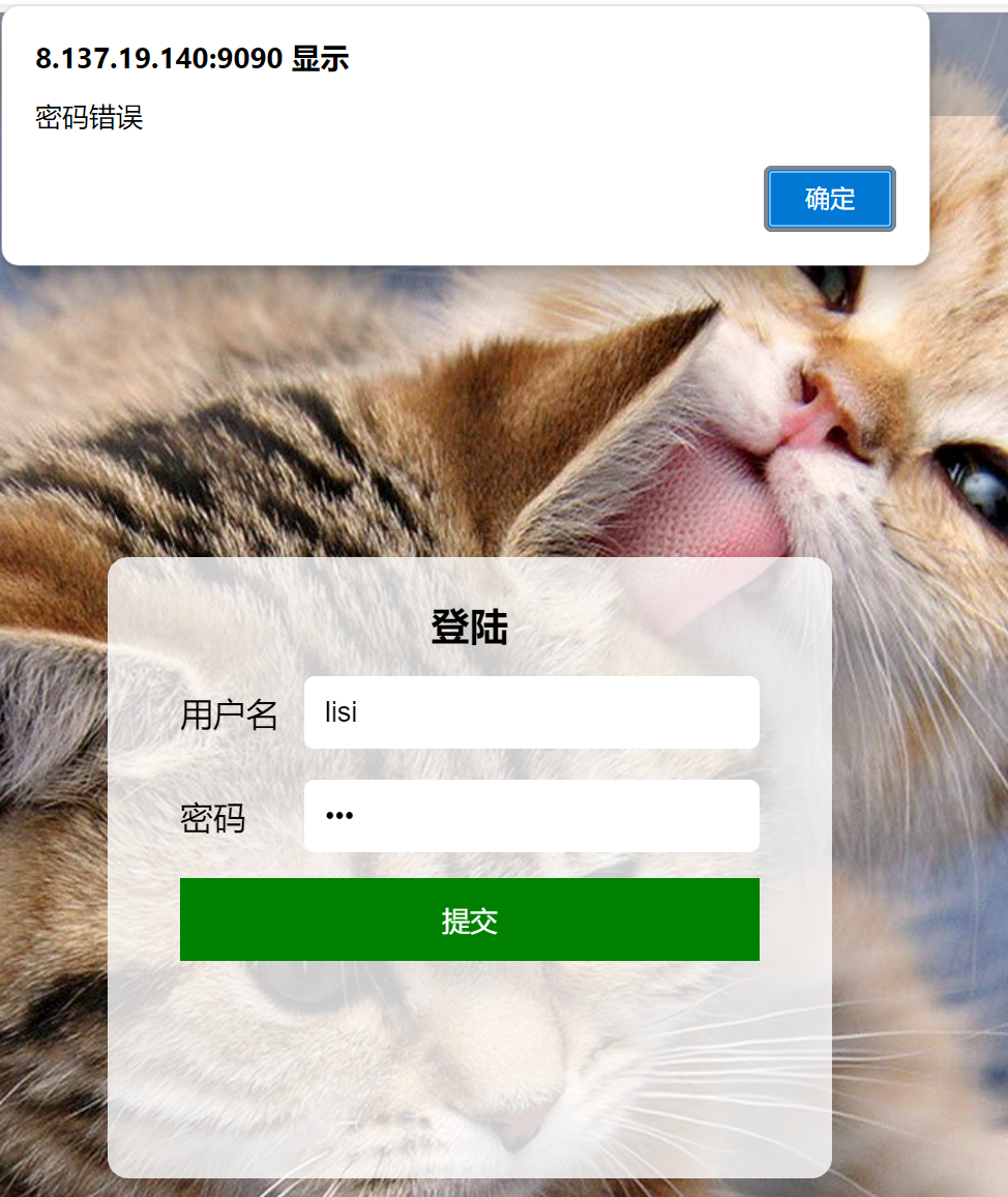 预期结果:页面弹出错误提示:密码错误