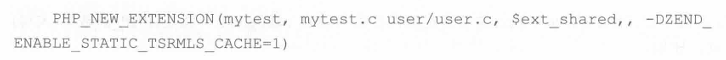 9.PHP_NEW_EXTENSION(extname, sources [, shared [, sapi_class [, extra-cflags [, cxx [, zend_ext]]]]]):注册一个扩展。extname参数是扩展名;sources参数是空格隔开的扩展的全部.c源文件名;shared参数确定此扩展是动态库还是静态库。每个扩展的config.m4中都需要通过此宏完成扩展的编译设置。一个例子:
