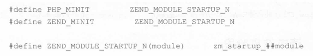 扩展中可通过PHP_MINIT_FUNCTION()或ZEND_MINIT_FUNCTION()宏来定义此阶段的钩子函数,该宏为函数设置了统一参数,并把函数名加上了zm_startup_前缀: