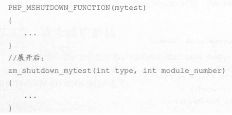 此钩子函数可通过PHP_MSHUTDOWN()或ZEND_MSHUTDOWN()宏来获取函数地址: