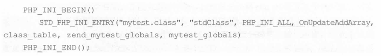 扩展中如想获取配置项,需要为配置项设置解析规则,配置时需要将各项规则定义在PHP_INI_BEGIN()、PHP_INI_END()宏之间: