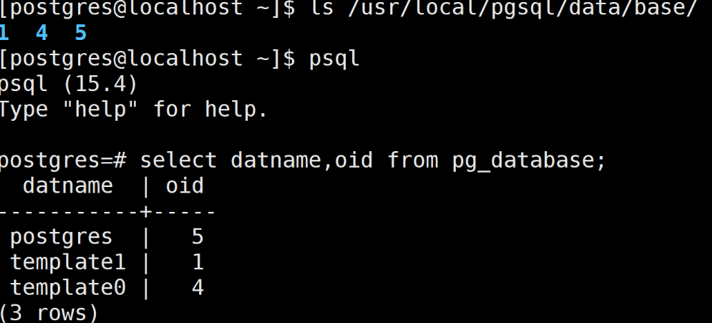 每个数据库都会在$PGDATA/base 下面生成一个子目录,如下图,都会-一对应。