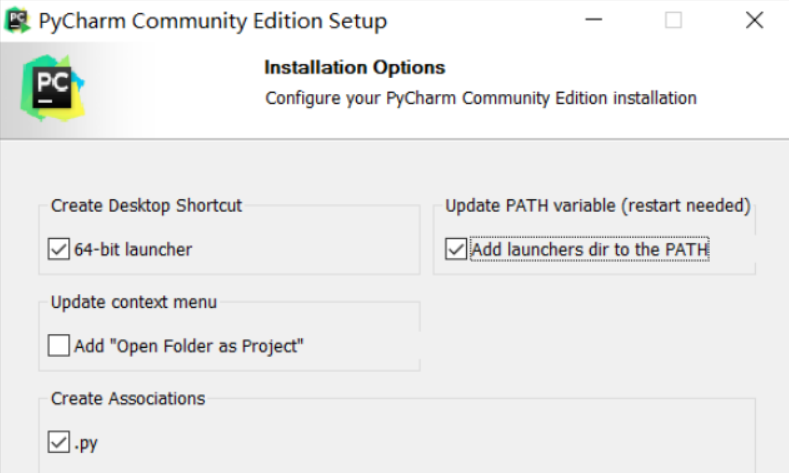 安装时,请放在 D 盘的新建文件夹:D:\PyCharm 里。选好安装地址后,请勾选如图所示。