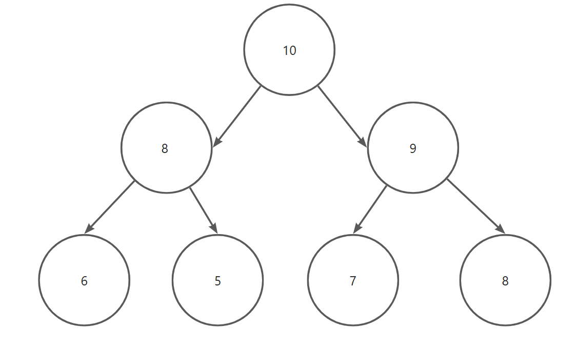 - 每个节点的值都大于或等于其子节点的值。也就是说,对于任意节点 i,都必须大于其子节点的值,最终也就是堆的根节点(即树的顶部)始终是整个堆的最大值;