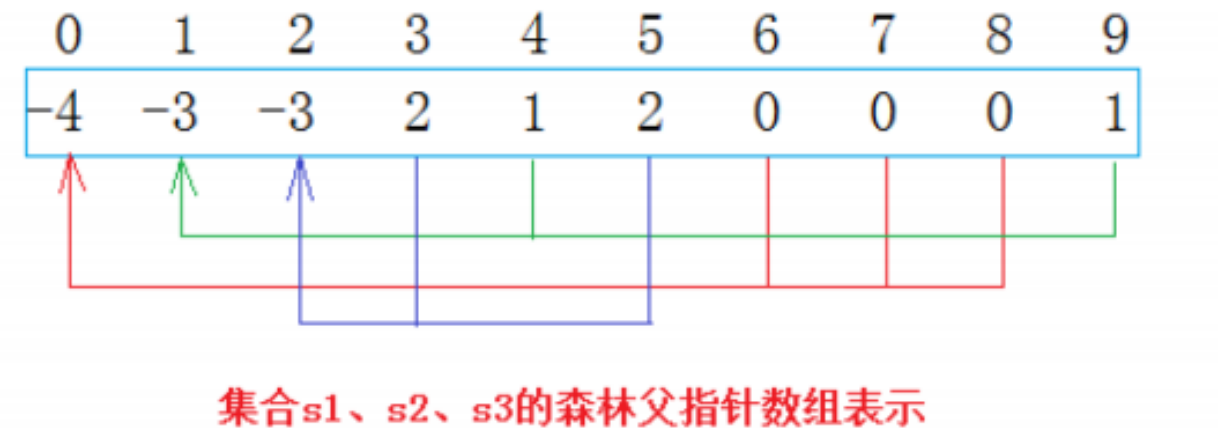 - 数组中如果为非负数,代表该元素双亲在数组中的下标