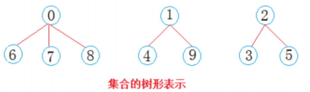 沿着数组表示的树形关系往上一直找到树的根,如果根相同表明在同一个集合,否则不在- 将两个集合归并成一个集合