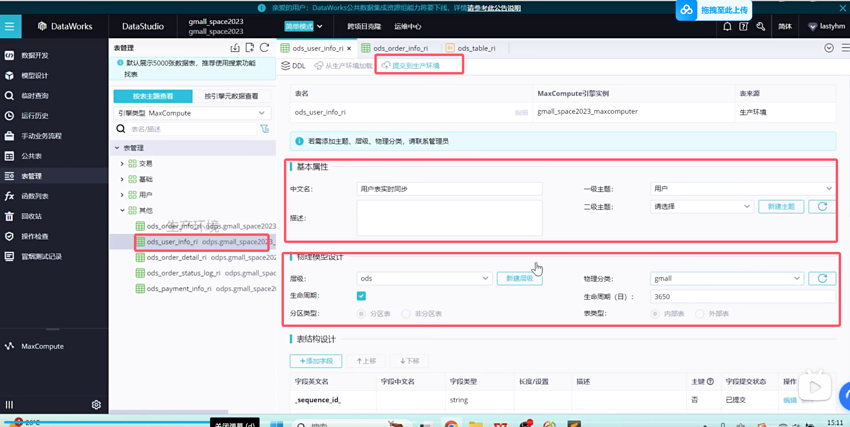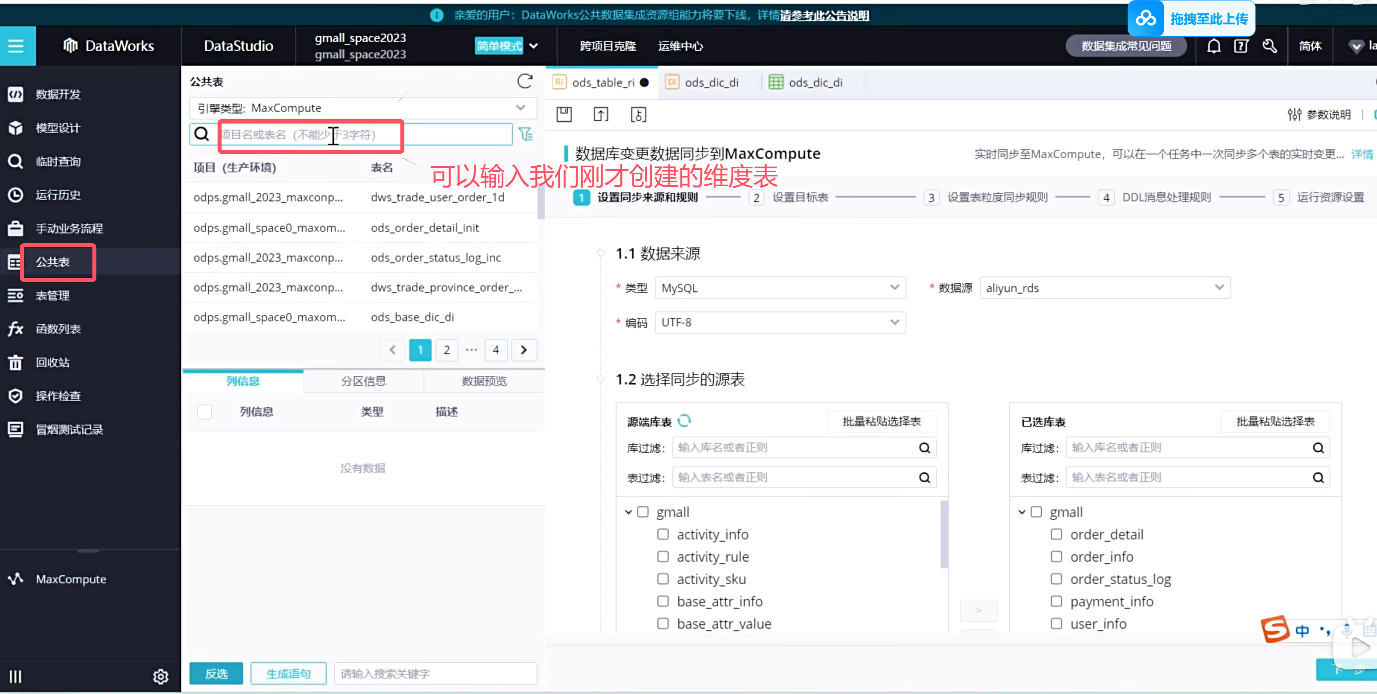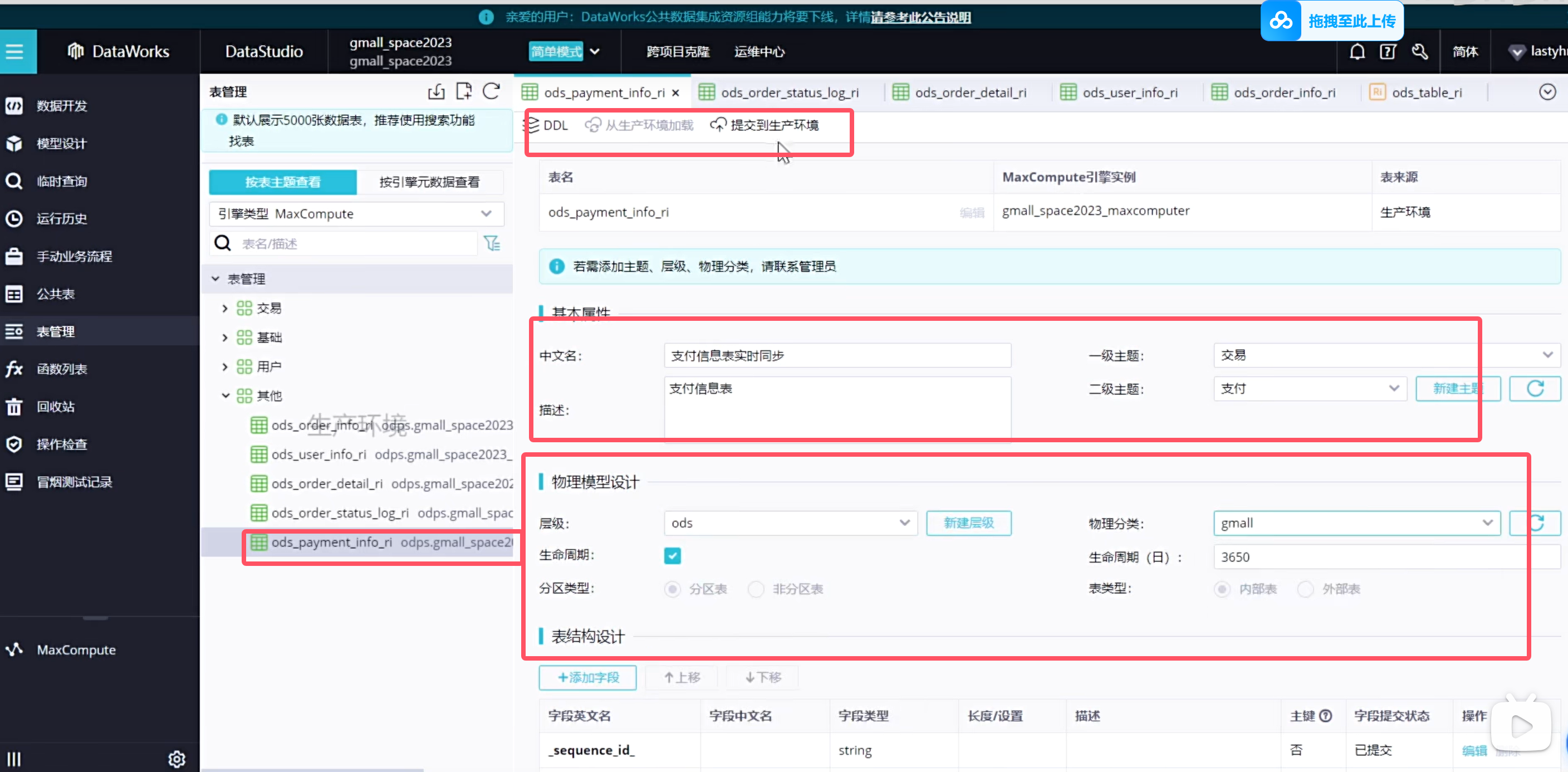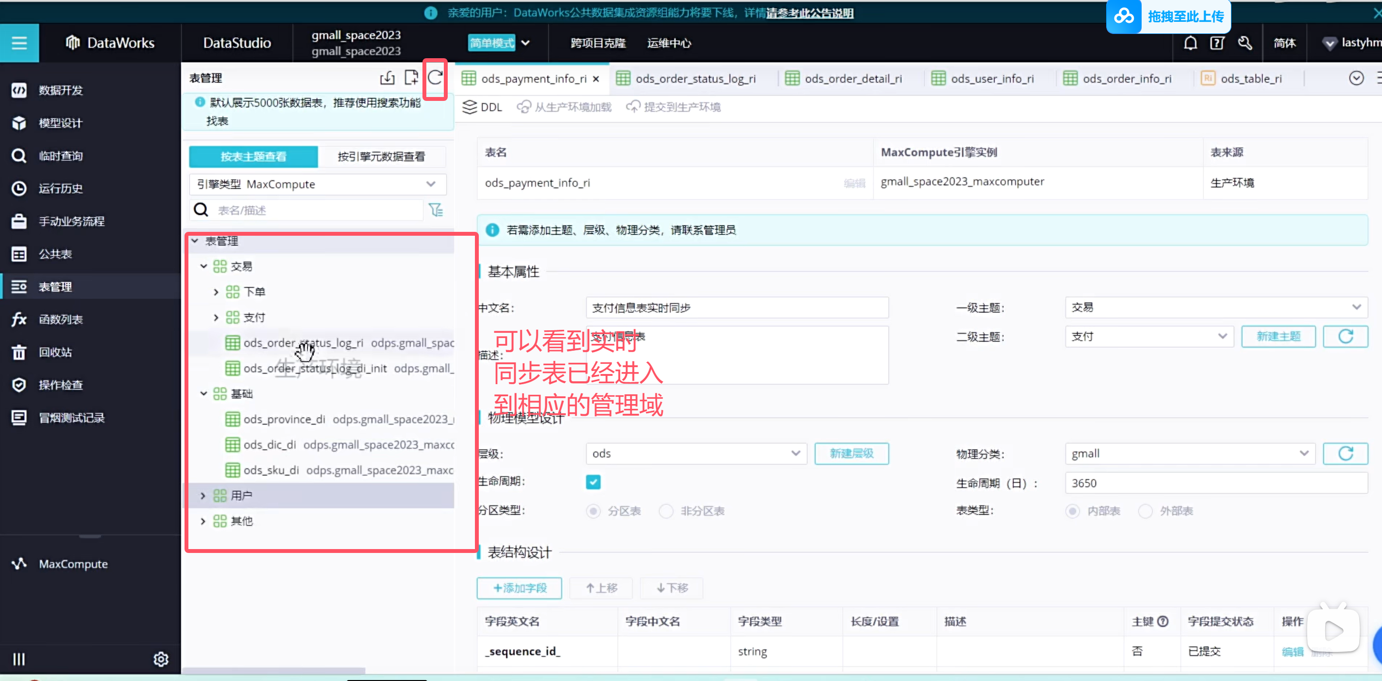 确认完了之后就可以看到ods层的表全部都被关联到了MaxCompute的表中