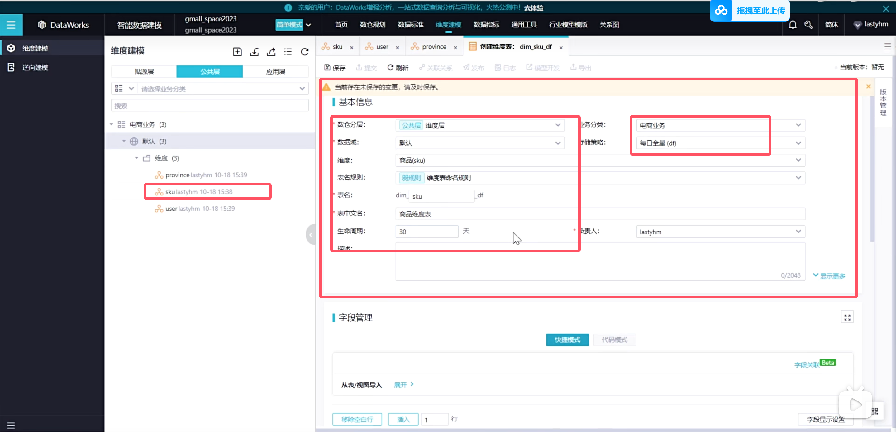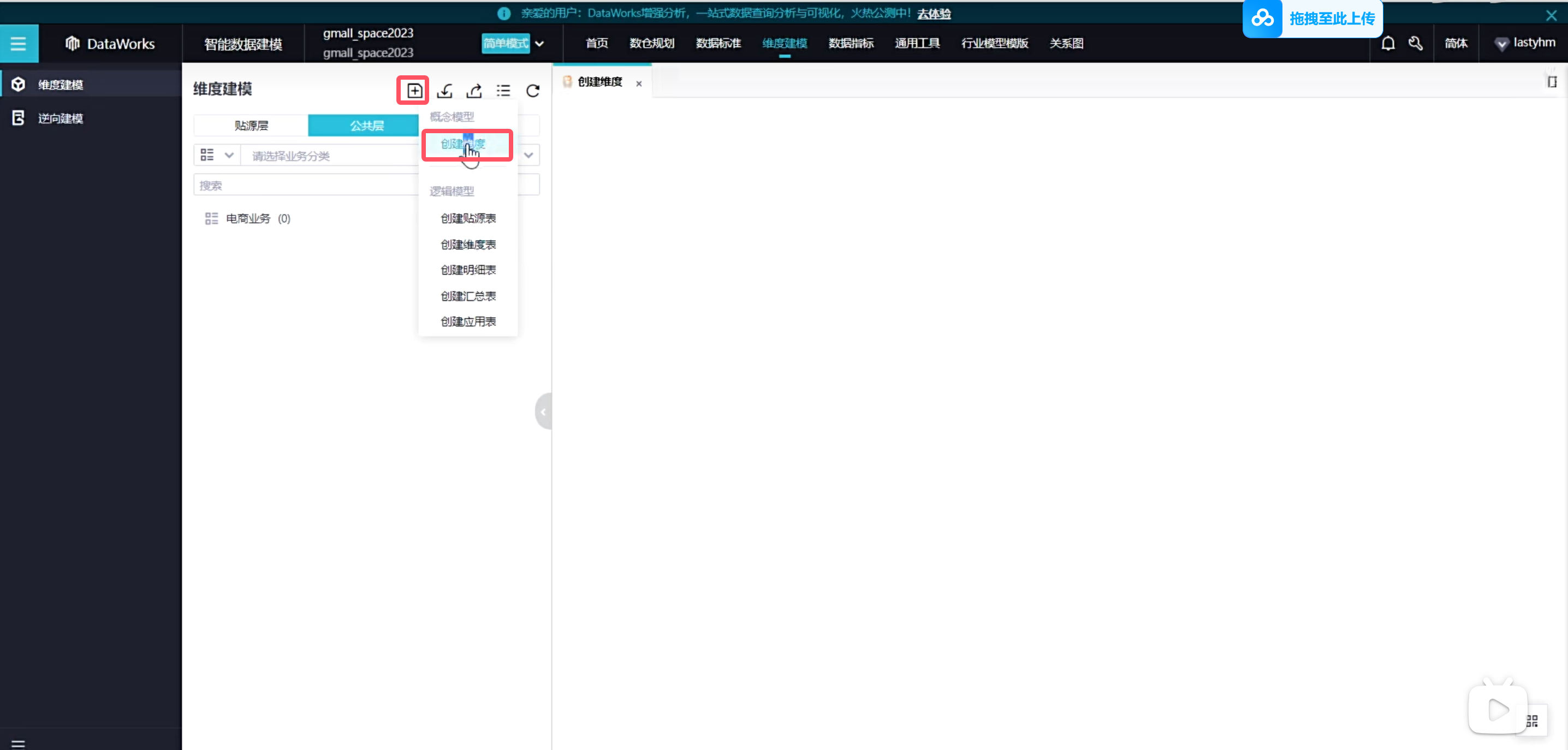 说明: 数仓建模工具是直接嵌套在dataworks里面的
