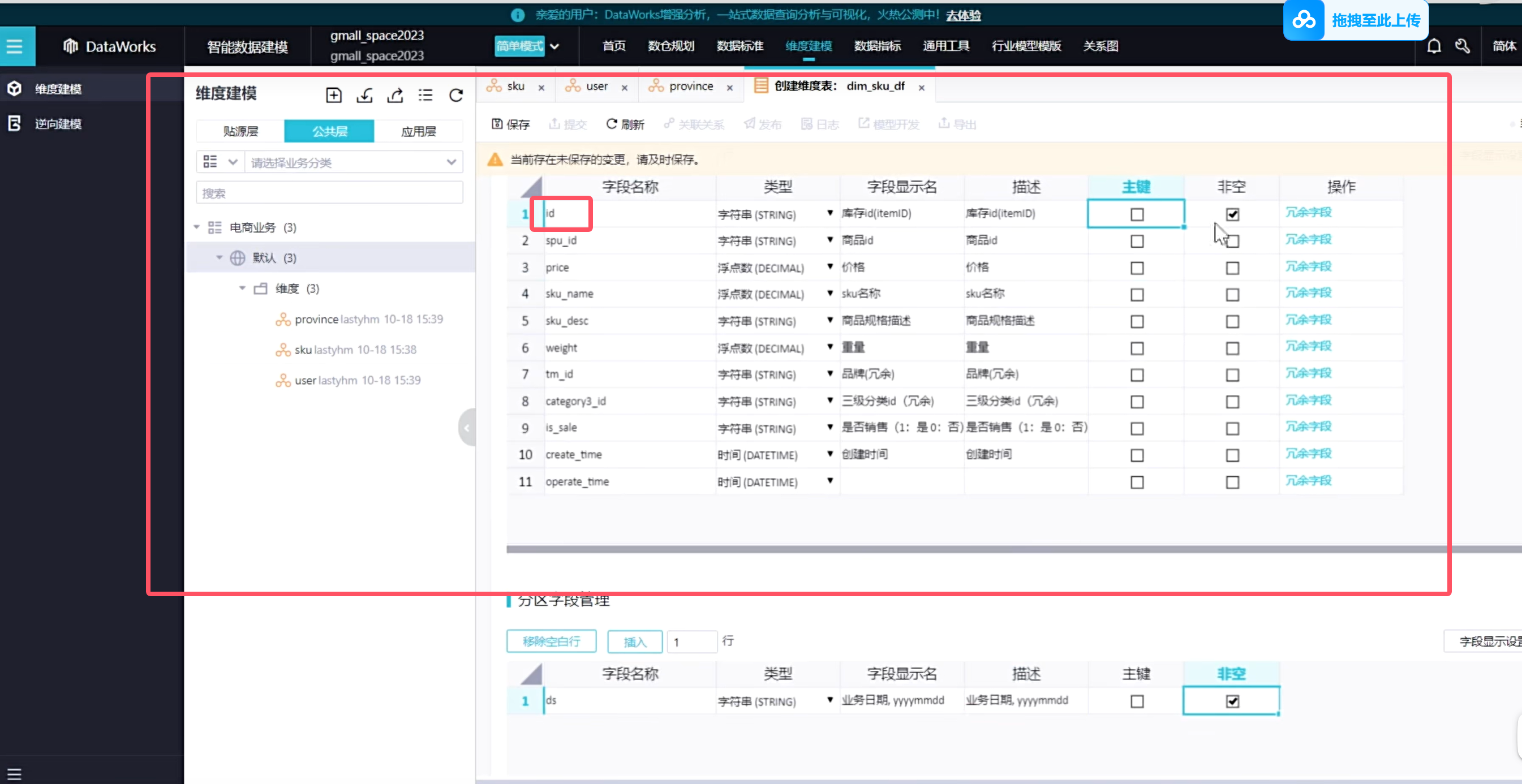 再往下就是分区字段管理,我们可以删除掉多余的分区字段
