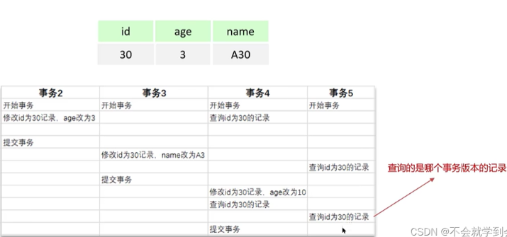 不同事务或相同事务对同一条记录进行修改 ,会导致该记录的undolog生成 一条记录版本链表 ,链表的头部时最新的旧记录,链表尾部是最早的旧记录( 看图更容易理解 ) 通过DB_ROLL_PTR回滚指针连接
