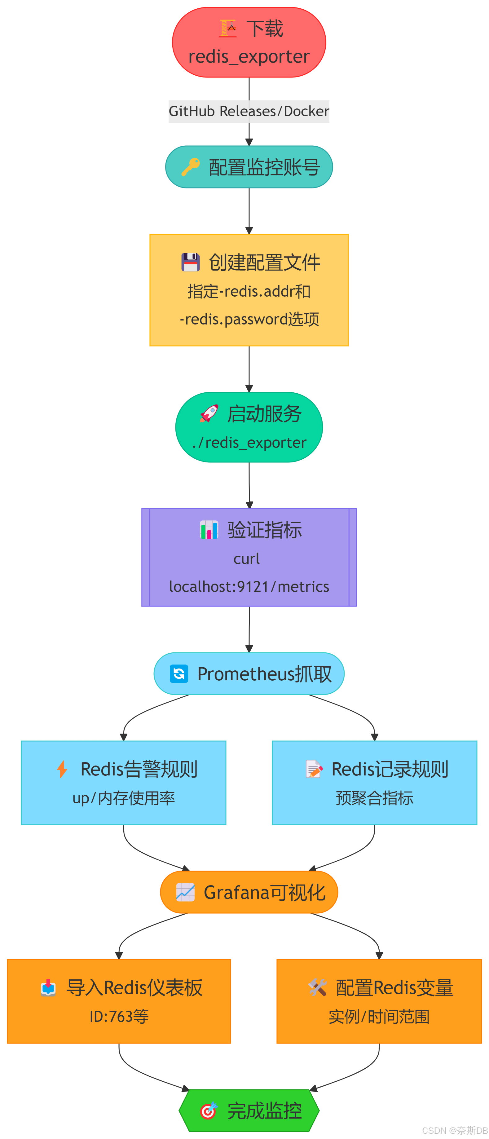文中会手把手部署redis_exporter、配置Prometheus抓取数据,再通过Grafana设计直观的监控面板,也会分享几个超实用的Redis告警规则,帮各位提前规避线上风险。话不多说,直接上操作,让你的Redis享受24小时的监护!🚀