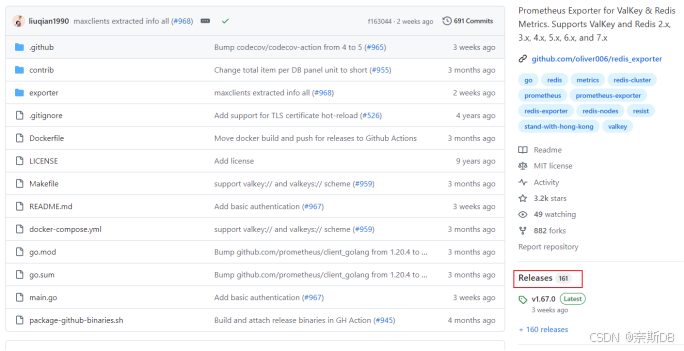 2)跳转到了gitHub,点击redis_exporter的版本集,选择最新的redis_exporter下载