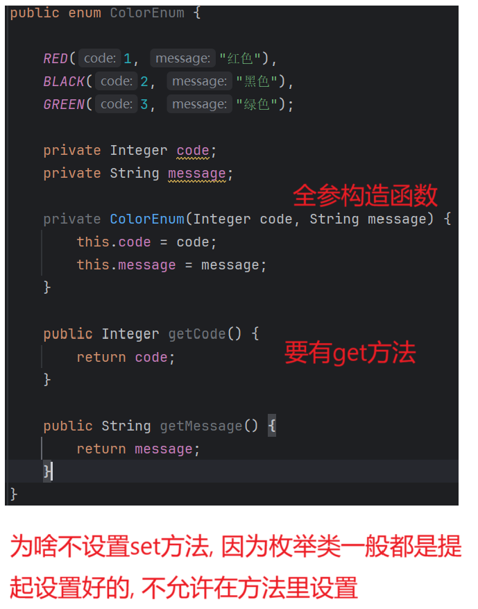 2.定义枚举对象, 因为是对象, 所以我们要有对应属性的构造方法