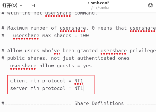 或者直接打开smb.conf进行修改