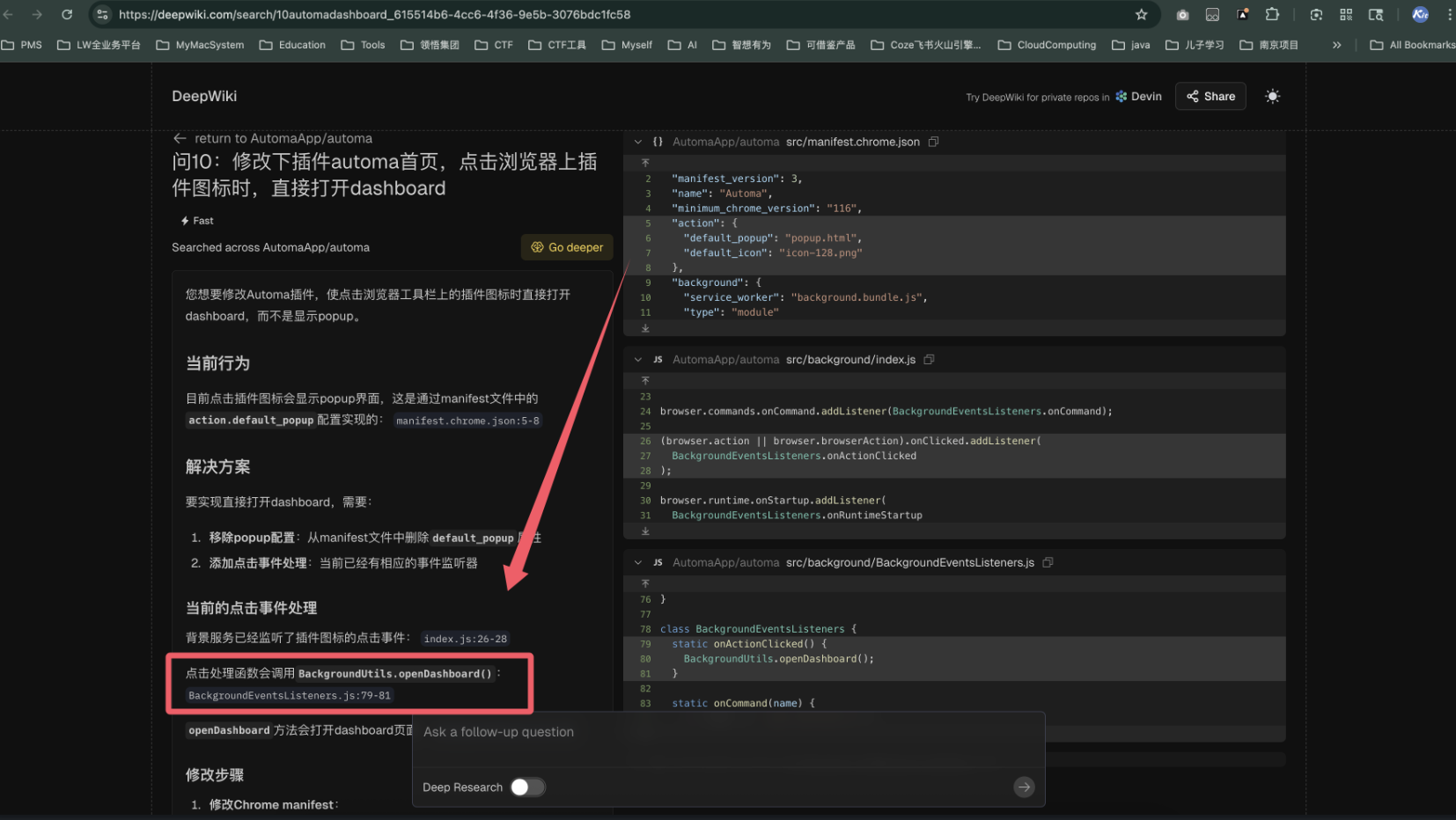 上述问题也可以DeepWiki中询问,这样可以定位到关键代码,问11的BackgroundUtils.openDashboard('');方法就是通过DeepWiki定位到的: