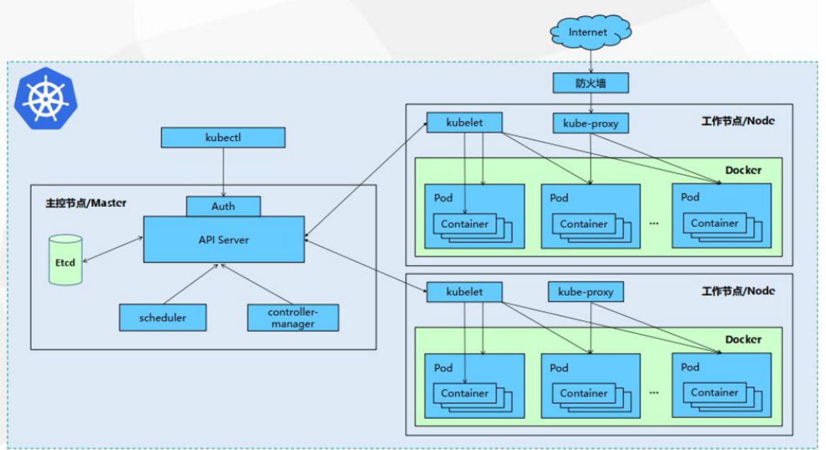 - 所有对 k8s 的集群操作,都必须经过主节点进行调度