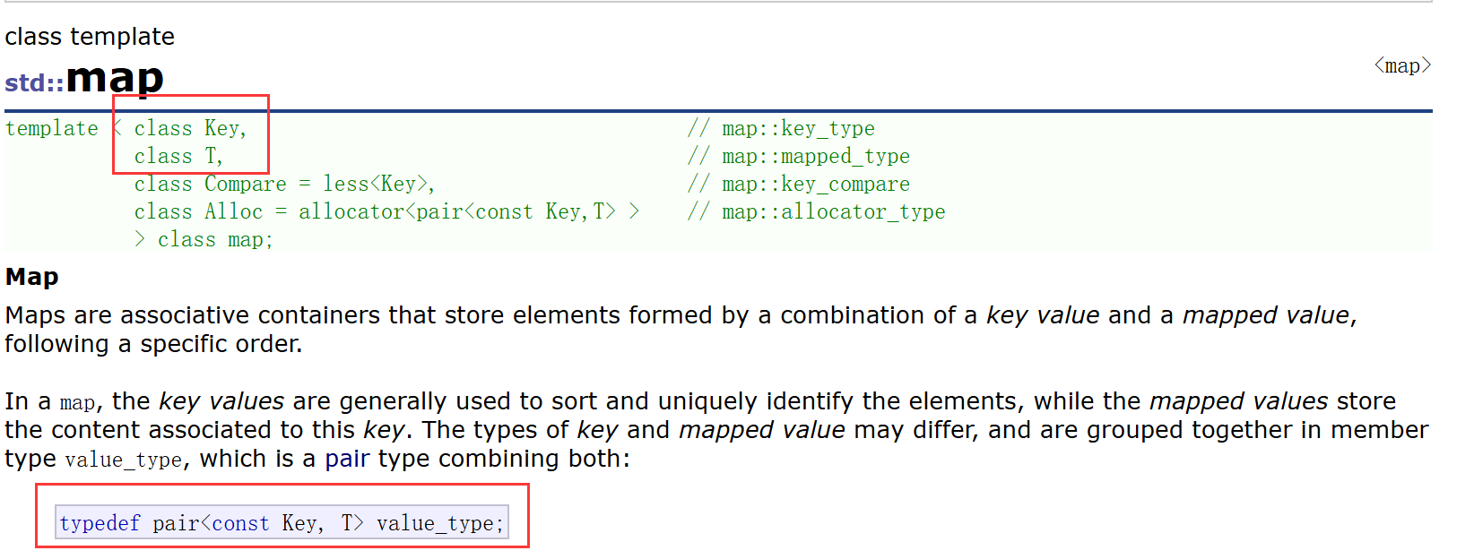 pair的结构其实很简单,就是两个类型的两个成员封装在一起,T1 first、T2 second。在map的结点中的pair,T1为key的类型,T2为value的类型,first就是key,second就是value。map的结点中,使用pair<Key, T>存储键值对数据。当然,pair类型中还有一些构造函数、拷贝构造函数,不多赘述。