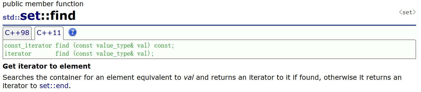 find:查找key为传参val的位置,若存在则返回这个位置的迭代器,若不存在则返回end()