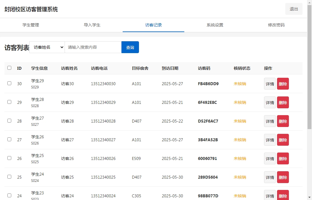 系统管理员可以管理学生和访客信息