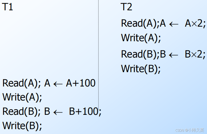 | A A+100;Write(A) | B Bx2;Write(B) |