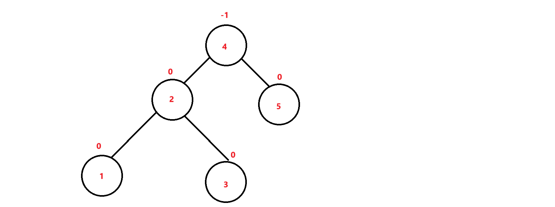 此时2所在节点的右子树高度发生了变化,因次让它的平衡因子从-1变成了0,但是4所在节点的左子树插入前和插入后的高度并没有发生变化,因此它的平衡因子还是-1。