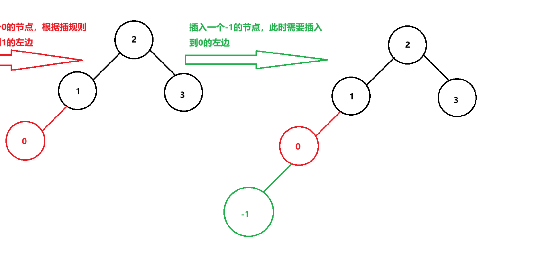 此时的2所在节点的平衡因子是-1,当我们往他的右子树插入一个元素以后,如下所示: