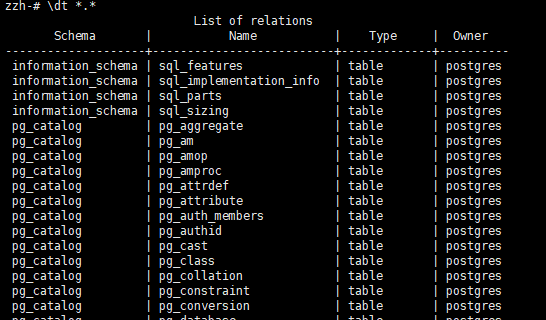 \dt 列出数据库下所有的表