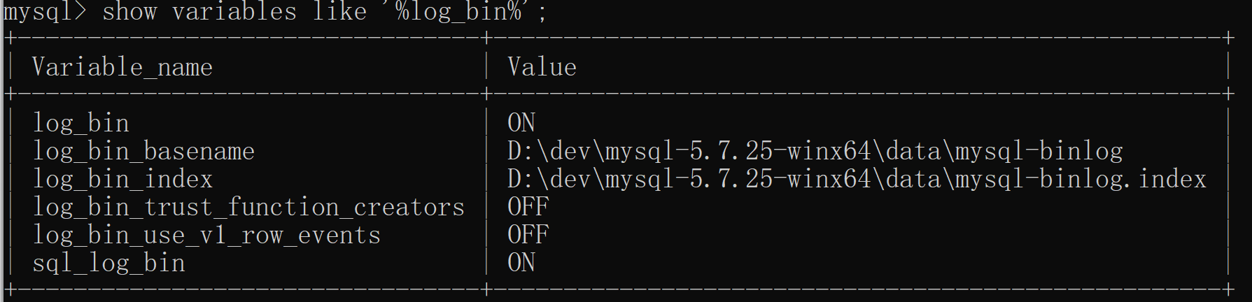 mysqlbinlog --no-defaults -v --base64-output=decode-rows D:/dev/mysql-5.7.25-winx64/data/mysql-binlog.000008
