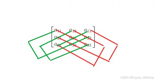a 11 a 12 ⋯ a 1 n a 21 a 22 ⋯ a 2 n ⋮ ⋮ ⋮ a n 1 a n 2 ⋯ a n n \] = ∑ j 1 j 2 . . . j n ( − 1 ) l a 1 j 1 a 2 j 2 ⋯ a n j n \\left\[\\begin{matrix} a_{11} \& a_{12} \& \\cdots \& a_{1n} \\\\ a_{21} \& a_{22} \& \\cdots \& a_{2n} \\\\ \\vdots \& \\vdots \& \& \\vdots \\\\ a_{n1} \& a_{n2} \& \\cdots \& a_{nn} \\end{matrix}\\right\] = \\sum_{j_1j_2...j_n}(-1)\^la_{1j_1}a_{2j_2}\\cdots a_{nj_n} a11a21⋮an1a12a22⋮an2⋯⋯⋯a1na2n⋮ann =j1j2...jn∑(−1)la1j1a2j2⋯anjn 其中 a i j a_{ij} aij, i = 1 , 2 ⋯ , n i=1,2\\cdots, n i=1,2⋯,n, j = 1 , 2 , ⋯ , n j=1,2,\\cdots, n j=1,2,⋯,n, 称为行列式的元素, 其中 i i i称为行标, 表示该元素位于哪一行, j j j称为列下表, 表示该元素位于哪一列 j 1 j 2 ⋯ j n j_1j_2\\cdots j_n j1j2⋯jn代表 ∑ j 1 j 2 . . . j n \\sum_{j_1j_2...j_n} ∑j1j2...jn对 j 1 j 2 ⋯ j n j_1j_2\\cdots j_n j1j2⋯jn取一遍 1 , 2 , ⋯ n 1,2,\\cdots n 1,2,⋯n的一切排列求和, 共有 n ! n! n!项 如, 123的排列为 123 , 132 , 213 , 232 , 312 , 321 123, 132, 213, 232, 312, 321 123,132,213,232,312,321排列 321 321 321的逆序数为 3 3 3, 3 ! = 6 3!=6 3!=6项 ##### 常见行列式计算 **一阶行列式** \[ a 1 \] = a 1 \\left\[\\begin{matrix} a_1 \\end{matrix}\\right\] = a_1 \[a1\]=a1 **二阶行列式** \[ a 11 a 12 a 21 a 22 \] = a 11 a 22 − a 12 a 21 \\left\[\\begin{matrix} a_{11} \& a_{12} \\\\ a_{21} \& a_{22} \\end{matrix}\\right\] = a_{11}a_{22} - a_{12}a_{21} \[a11a21a12a22\]=a11a22−a12a21 **三阶行列式** \[ a 11 a 12 a 13 a 21 a 22 a 23 a 31 a 32 a 33 \] = a 11 a 22 a 33 + a 12 a 23 a 31 + a 13 a 21 a 32 − a 13 a 22 a 31 − a 12 a 21 a 33 − a 11 a 23 a 32 \\left\[\\begin{matrix} a_{11} \& a_{12} \& a_{13} \\\\ a_{21} \& a_{22} \& a_{23} \\\\ a_{31} \& a_{32} \& a_{33} \\end{matrix}\\right\] = a_{11}a_{22}a_{33} + a_{12}a_{23}a_{31} + a_{13}a_{21}a_{32} - a_{13}a_{22}a_{31} - a_{12}a_{21}a_{33} - a_{11}a_{23}a_{32} a11a21a31a12a22a32a13a23a33 =a11a22a33+a12a23a31+a13a21a32−a13a22a31−a12a21a33−a11a23a32 **计算公式** 主对角线 - 副对角线  **求行列式的值** A = \[ 1 − 2 3 − 1 2 1 − 3 − 4 − 2 \] A = \\left\[\\begin{matrix} 1 \& -2 \& 3 \\\\ -1 \& 2 \& 1 \\\\ -3 \& -4 \& -2 \\end{matrix}\\right\] A= 1−1−3−22−431−2 根据定义解得: A = 1 × 2 × ( − 2 ) + ( − 2 ) × 1 × ( − 3 ) + 3 × ( − 4 ) × ( − 1 ) − 3 × 2 × ( − 3 ) − ( − 2 ) × ( − 1 ) × ( − 2 ) − 1 × ( − 4 ) × 1 = 40 A=1 \\times 2 \\times (-2) + (-2) \\times 1 \\times (-3) + 3 \\times (-4) \\times (-1) - 3 \\times 2 \\times (-3) - (-2) \\times (-1) \\times (-2) - 1 \\times (-4) \\times 1 = 40 A=1×2×(−2)+(−2)×1×(−3)+3×(−4)×(−1)−3×2×(−3)−(−2)×(−1)×(−2)−1×(−4)×1=40 方阵 A A A的行列式可以判断 A A A是否可逆, **不为0可逆, 为0不可逆** #### 行列式和矩阵的区别 ##### 行列式 * 行数等于列数 * 共有 n 2 n\^2 n2个元素 * 本质是一个数值(一种矩阵的计算方式) ##### 矩阵 * 行数可以不等于列数 * 有 m × n m \\times n m×n和元素 * 本质是一个数表 #### 行列式计算 `Numpy`中通过`np.linalg.det()`函数计算 ```python import numpy as np A = np.array([[1, 2], [3, 4]]) print("A 的行列式为 np.linalg.det(A): ", np.linalg.det(A)) print("A 矩阵是否可逆: ", np.linalg.det(A) != 0) B = np.array([[1, 2, 3], [4, 5, 6], [7, 8, 9]]) print("B 的行列式为 np.linalg.det(B): ", np.linalg.det(B)) print("B 矩阵是否可逆: ", np.linalg.det(B) != 0) ``` ### 矩阵的秩 矩阵的秩代表计算线性方程组解的数目, 去掉无关项(线性相关)然后其余的数量就是矩阵的秩, 矩阵的秩可以从行和列两个方向观察, 首先要了解线性相关和线性无关 #### 向量组 α 1 = \[ a 11 a 21 ⋮ a m 1 \] , α 2 = \[ a 12 a 22 ⋮ a m 2 \] , α n = \[ a 1 n a 2 n ⋮ a m n \] \\alpha_1 = \\left\[\\begin{matrix} a_{11} \\\\ a_{21} \\\\ \\vdots \\\\ a_{m1} \\end{matrix}\\right\], \\alpha_2 = \\left\[\\begin{matrix} a_{12} \\\\ a_{22} \\\\ \\vdots \\\\ a_{m2} \\end{matrix}\\right\], \\alpha_n = \\left\[\\begin{matrix} a_{1n} \\\\ a_{2n} \\\\ \\vdots \\\\ a_{mn} \\end{matrix}\\right\] α1= a11a21⋮am1 ,α2= a12a22⋮am2 ,αn= a1na2n⋮amn , 每个 α i \\alpha_i αi称为 m m m维列向量 β 1 = \[ a 11 a 21 ⋯ a m 1 \] , β 2 = \[ a 12 a 22 ⋯ a m 2 \] , β n = \[ a 1 n a 2 n ⋯ a m n \] \\beta_1 = \\left\[\\begin{matrix} a_{11} \& a_{21} \& \\cdots \& a_{m1} \\end{matrix}\\right\], \\beta_2 = \\left\[\\begin{matrix} a_{12} \& a_{22} \& \\cdots \&\& a_{m2} \\end{matrix}\\right\], \\beta_n = \\left\[\\begin{matrix} a_{1n} \& a_{2n} \& \\cdots \& a_{mn} \\end{matrix}\\right\] β1=\[a11a21⋯am1\],β2=\[a12a22⋯am2\],βn=\[a1na2n⋯amn\], 每个 a i a_i ai称为 m m m维行向量 ```python import numpy as np A = np.array([[1, 2, 3], [4, 5, 6]]) # reshape 重新绘制向量, 否则为1维数组 print("第0行: \n", A[0, :].reshape(1, -1)) print("第1列: \n", A[:, 1].reshape(-1, 1)) """output: 第0行: [[1 2 3]] 第1列: [[2] [5]] """ ``` #### 向量组的线性相关和线性无关 ##### 线性相关 vs 线性无关 **本质问题**:这些向量里有没有「多余的」? ###### 线性相关(有冗余) * **例子** : 向量A = \[1,2\],向量B = \[2,4
