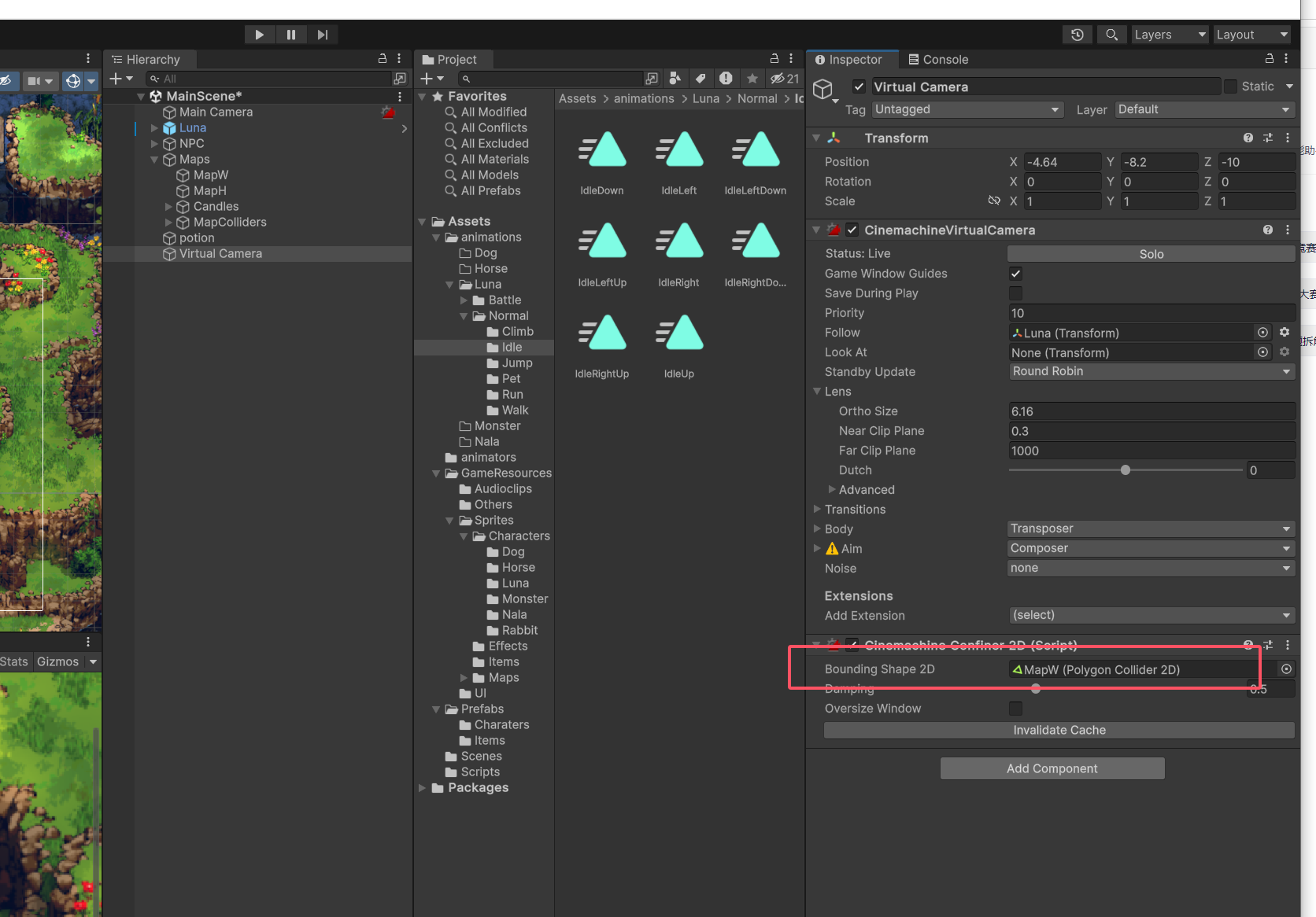最后将地图连带着碰撞器一起拖到蓄力相机的这个组件里面