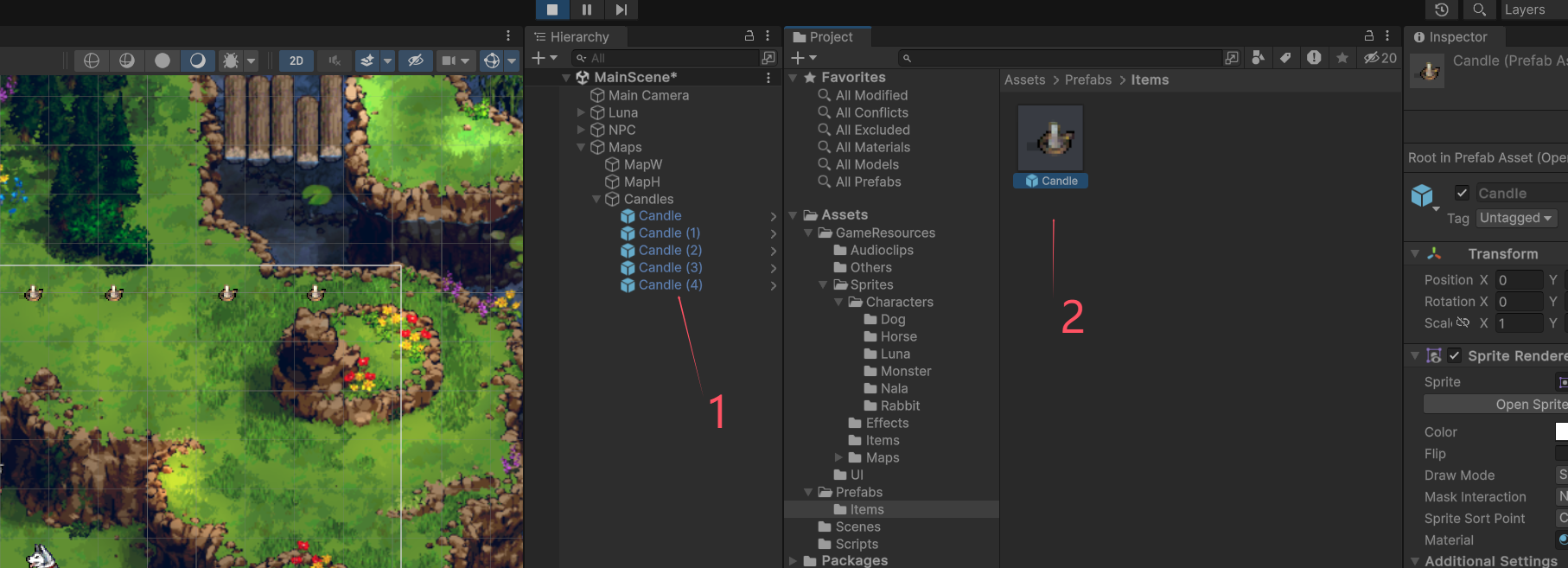 这时候 可以根据自制的物体 自定义pivot位置 分为单图片对象 和多图片对象(在project中进行点击修改)