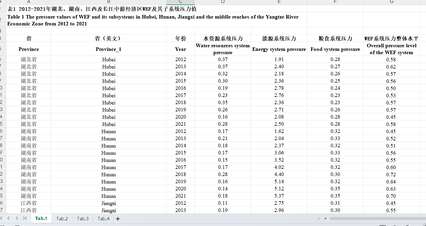 该数据集基于系统压力指数模型、TOPSIS综合评价法和Tapio脱钩模型,融合《中国统计年鉴》《中国能源统计年鉴》《中国环境统计年鉴》《中国城市统计年鉴》《中国农村统计年鉴》及2012-2021年湖北、湖南、江西三省相关统计年鉴、生态环境统计公报等数据,研发了长江中游经济区"水-能源-粮食"系统压力与城市绿色转型质量适配性评价数据集(2012-2021)。数据集内容包括:(1)2012-2021年长江中游经济区三省(湖北、湖南、江西)的"水-能源-粮食"系统压力指数结果数据;(2)2012-2021年三省城市绿色转型质量评价指标体系的原始数据及绿色转型质量综合指数;(3)2013-2021年三省系统压力与绿色转型质量脱钩指数计算结果数据。数据集存储为.xlsx格式。