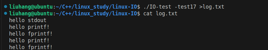 但是下面两个语句由于重定向的原因,刷新策略发生了变化(行缓冲->全缓冲),数据暂存到用户级缓冲区后,本来是等待进程结束后刷新到文件中去的,但是这个过程中却把1关闭了,才导致这两条数据并没有被刷新到文件中;