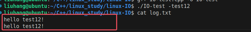 运行结果,可以发现输入重定向到了文件中